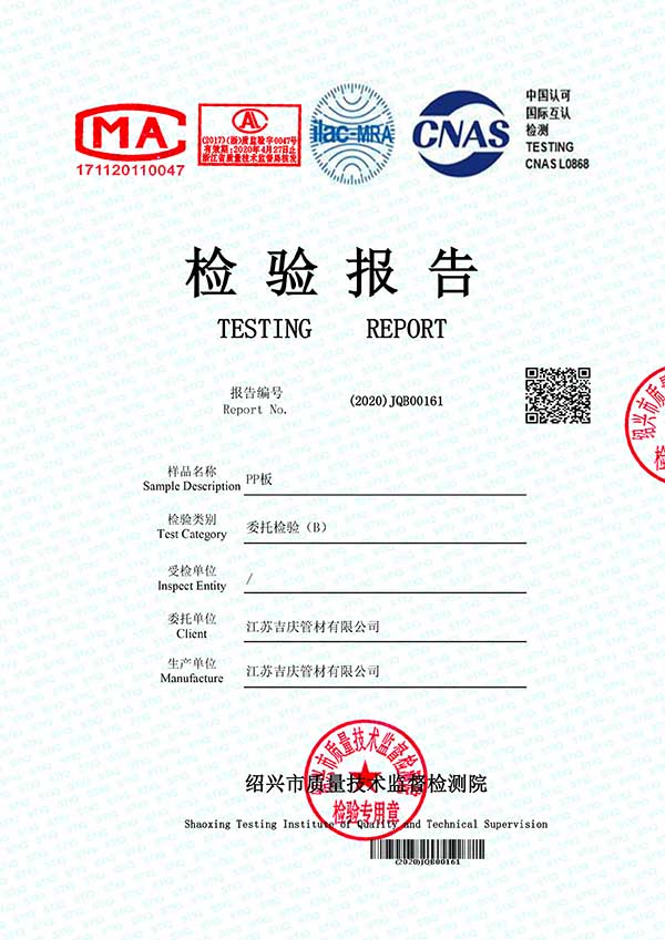 江蘇吉慶管材集團(tuán)有限公司創(chuàng)辦于2010年2月,是pp管,pp管材,pp管件,pp風(fēng)管,frpp管,frpp管材,pph管,pph管材,pph管件,pph風(fēng)管,pvdf管,pvdf管材,pp儲(chǔ)罐,pp板材的專(zhuān)業(yè)化生產(chǎn)企業(yè)。公司占地30余畝,擁有各類(lèi)資產(chǎn)8000余萬(wàn)元,專(zhuān)業(yè)技術(shù)人員20余人,管材生產(chǎn)線10條,管件生產(chǎn)線11條,具備了10000余噸各類(lèi)防腐塑料制品的年生產(chǎn)能力。公司通過(guò)了ISO9001-2000質(zhì)量體系認(rèn)證,同時(shí)被評(píng)為AAA信用單位,2018年公司被評(píng)為高新技術(shù)企業(yè),此后陸續(xù)取得安全生產(chǎn)管理證書(shū)等榮譽(yù)。公司位于水上花園城市----江蘇省揚(yáng)中市八橋鎮(zhèn)永福路18號(hào),交通便捷,可直接導(dǎo)航至公司園區(qū)內(nèi)。公司全體員工將以高度的敬業(yè)精神,嚴(yán)格的質(zhì)量控制理念和科學(xué)的管理方法,及時(shí)周到的服務(wù),竭力為我國(guó)塑料管道在各領(lǐng)域的推廣和應(yīng)用作出更大的貢獻(xiàn)!